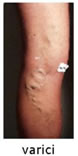 Sono vene allungate e gonfie che sporgono dalla superficie della pelle. Generalmente presenti agli arti inferiori dipendono dalla presenza di valvole difettose, incontinenti e da una debolezza delle pareti venose.